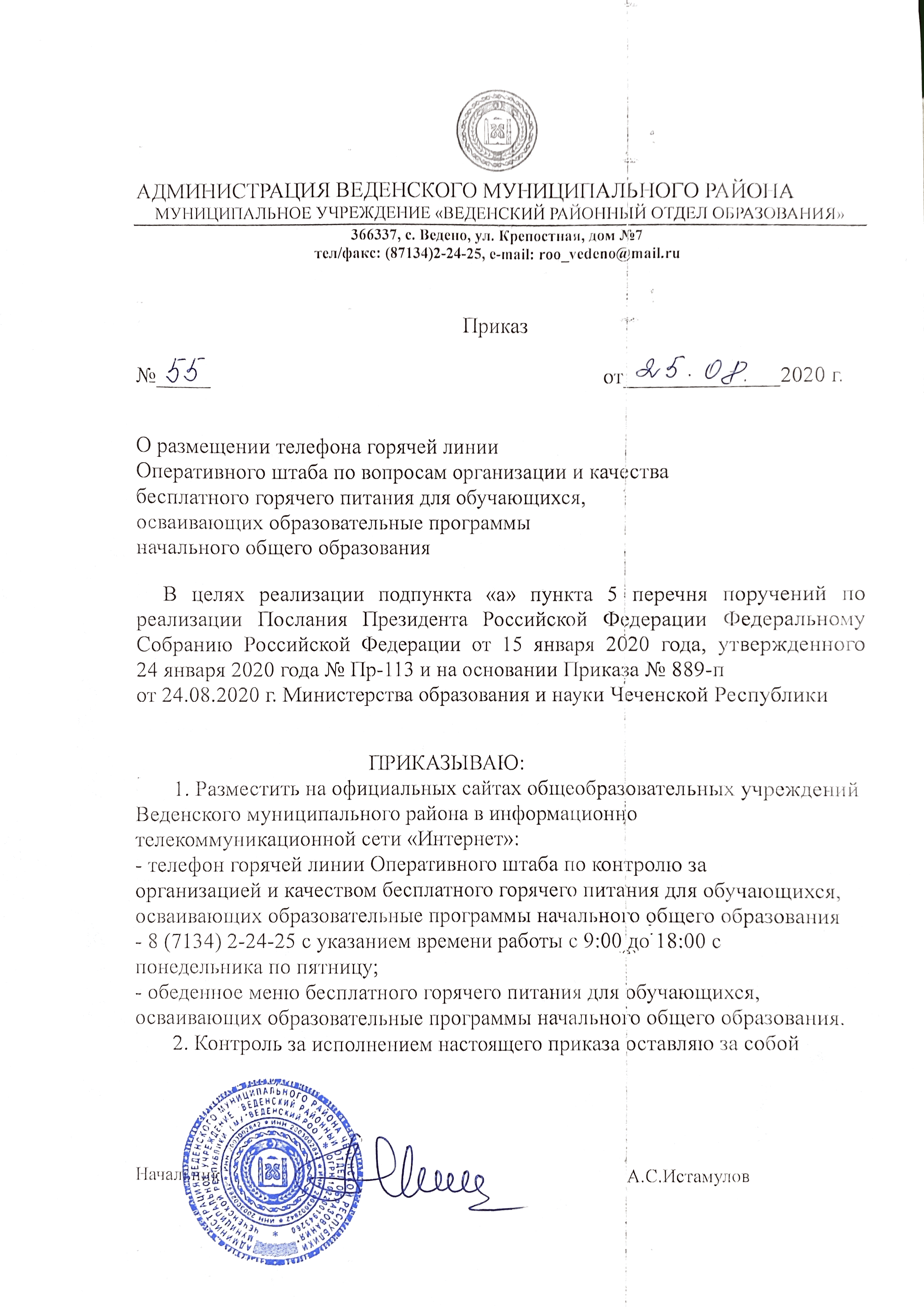 начального общего, основного общего и среднего общего образования на территории Веденского муниципального района Чеченской Республики